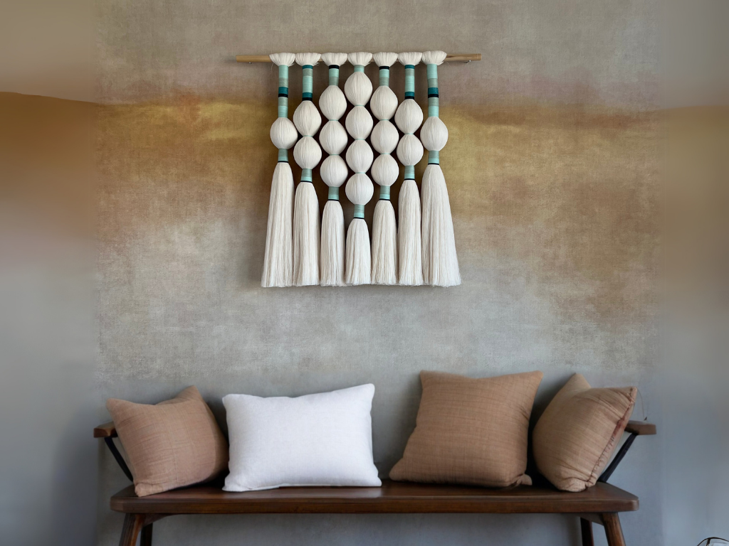 Bring the beauty of handmade macramé into your home with the Mirea, a timeless piece of handmade macramé wall hanging art that adds soul, style, and softness to your living space.
